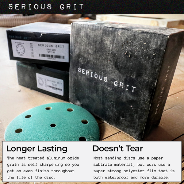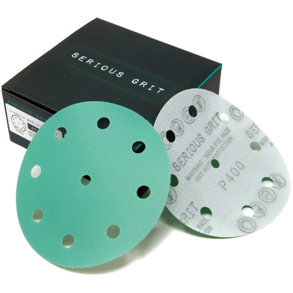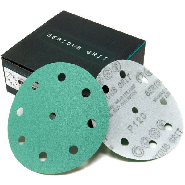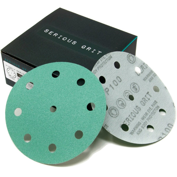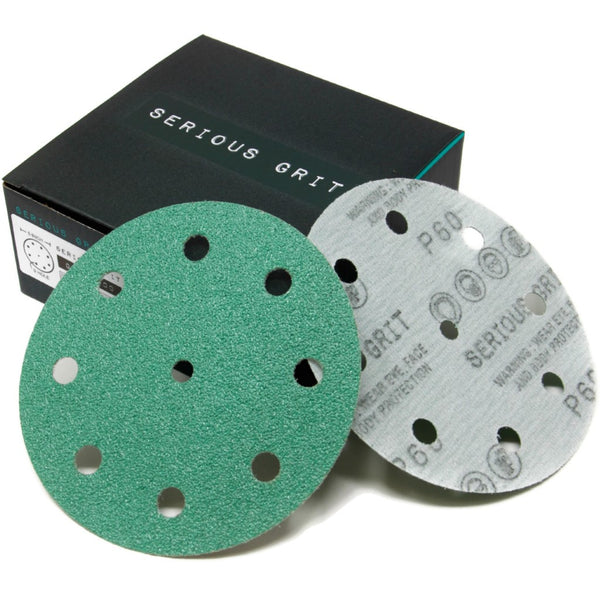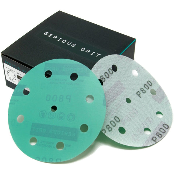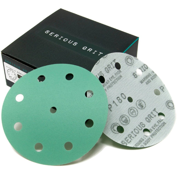 Serious Grit 5" 9 Hole sanding discs are premium film-backed discs designed to fit all Festool ETS and RO 125 series random orbital sanders. We offer grits from 40 grit to 2000 grit for everything from rough shaping to fine finishing work.