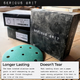 - Won't Tear - rather than the typical paper material most sanding discs use, ours use a super strong film material that is both waterproof and very resistant to tearing.