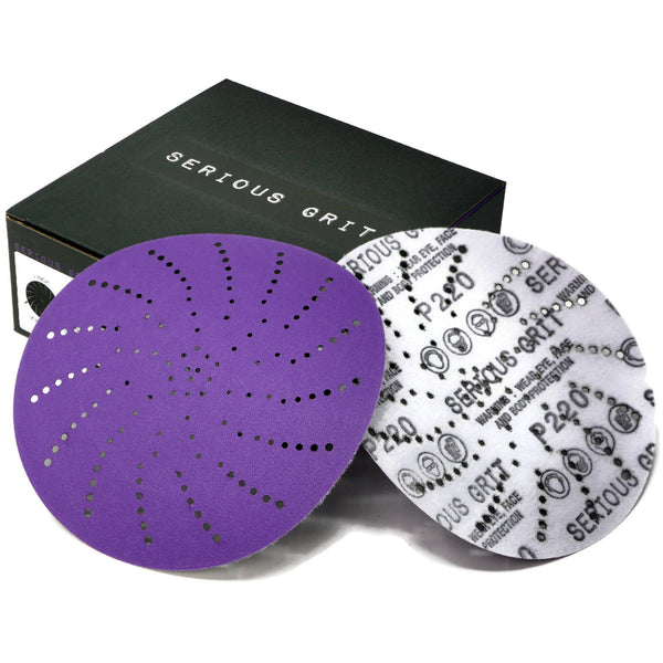 Serious Grit 6" Ceramic Multi-Hole hook & loop sanding discs are premium film-backed discs designed to fit any 6" random orbital sander with a hook and loop backing pad.