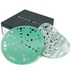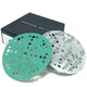 Mixed grit box includes 80 grit, 120 grit, 150 grit, 180 grit, and 220 grit (10 discs of each).