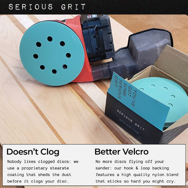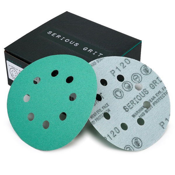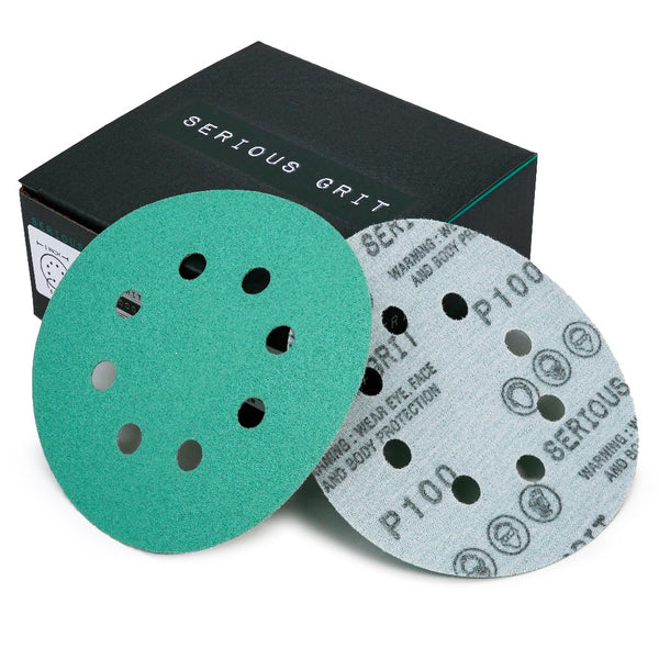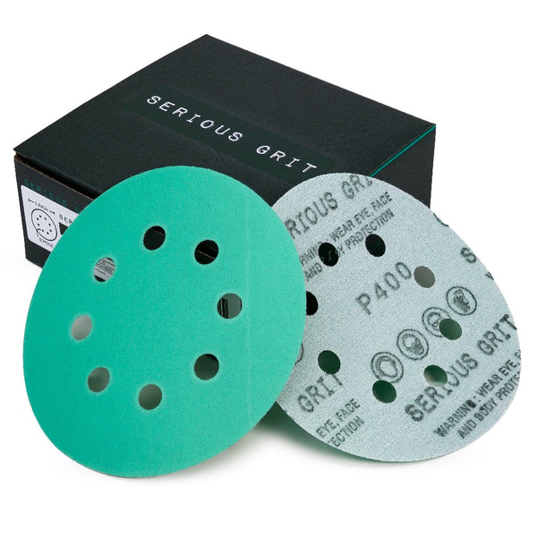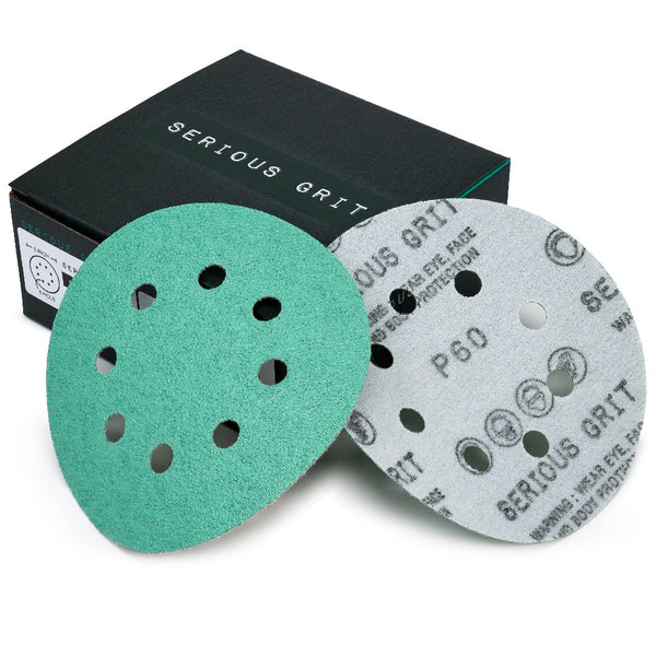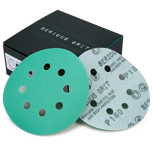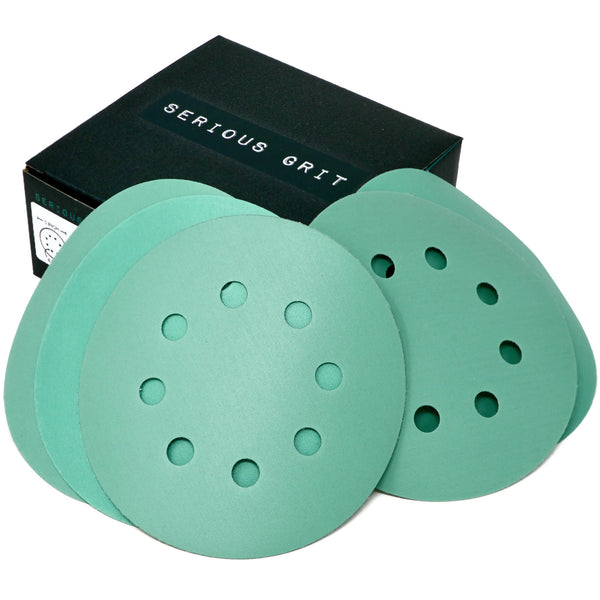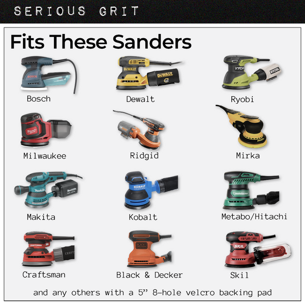 Serious Grit 5" 8 Hole sanding discs are premium film-backed discs designed to fit most 5" random orbital sanders. We offer grits from 40 grit to 2000 grit for everything from rough shaping to fine finishing work. See below for compatibility guide.